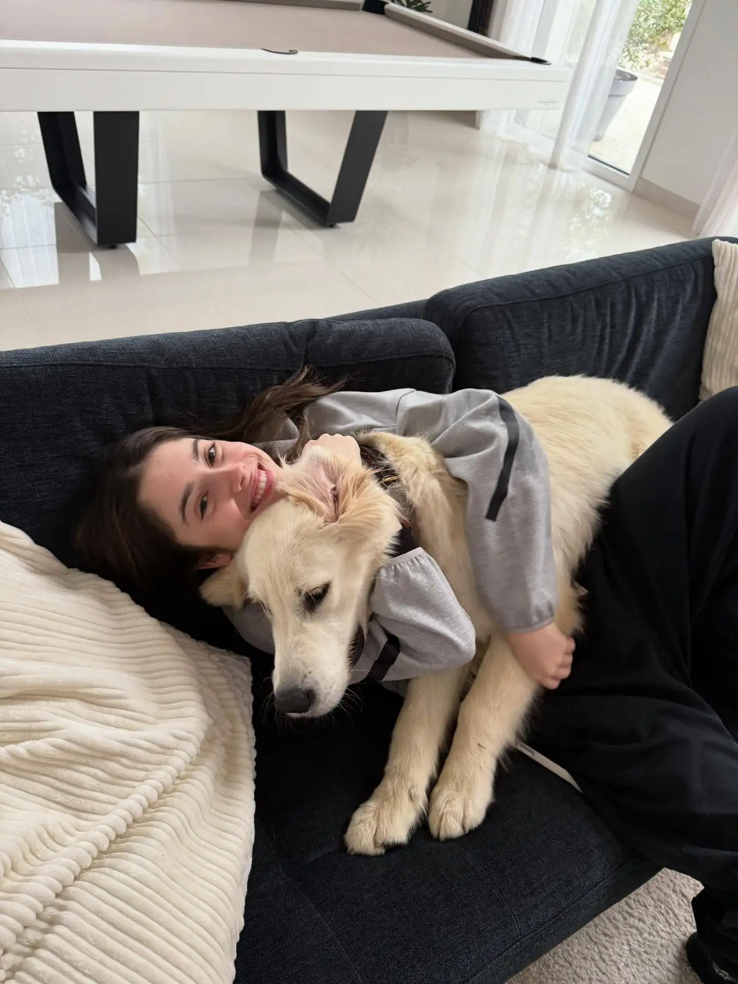 虎扑01月28日讯 若昂-内维斯的女友玛达莱娜更新社媒,晒出了他和内维斯共养的宠物狗子弹的照片集。